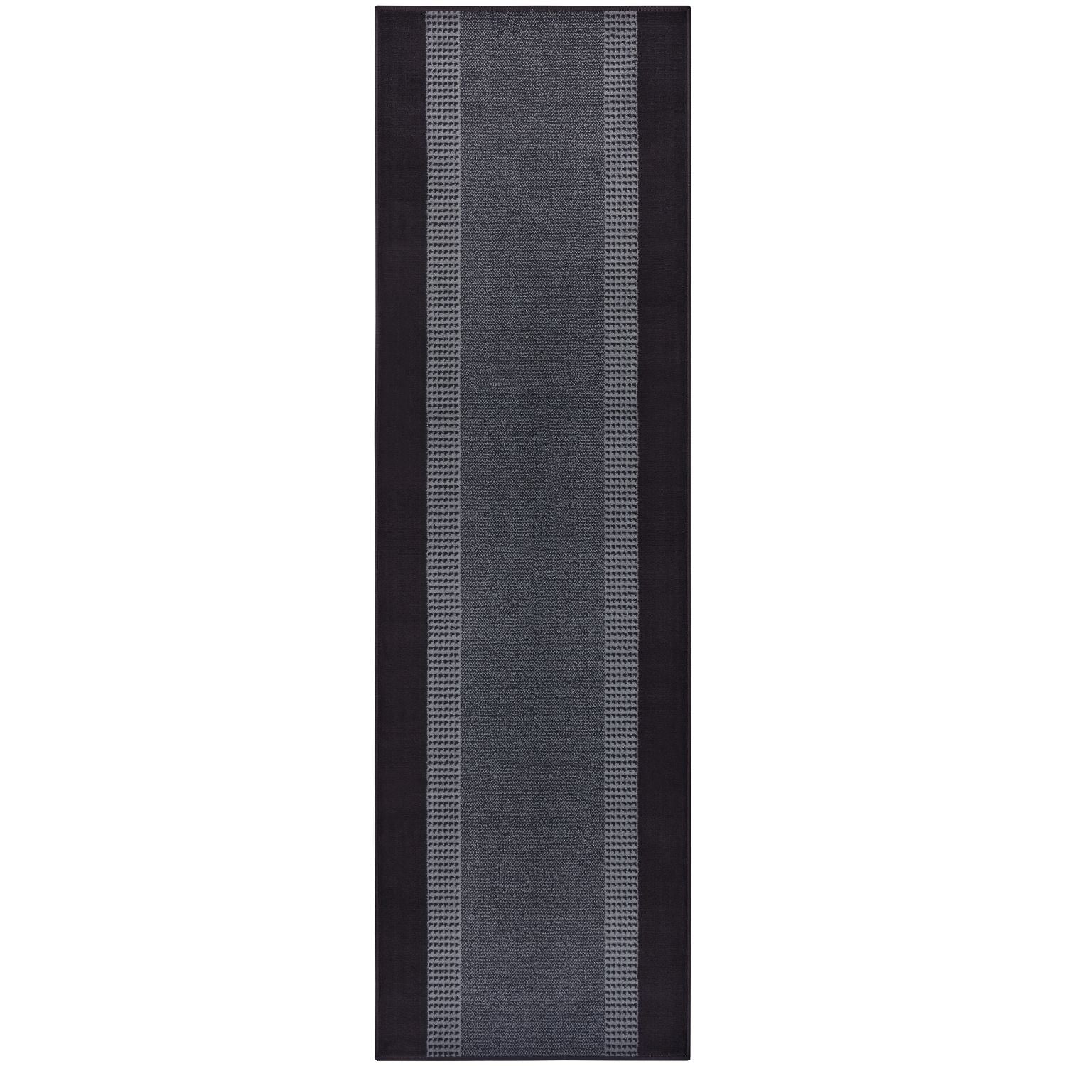 Add refined simplicity to corridors or living areas with the Designer Velours Black Runner “Band” – Classic Elegance. Its understated framed pattern and timeless dark tones deliver a polished appearance, while the soft velour finish provides comfort suited to everyday use.
