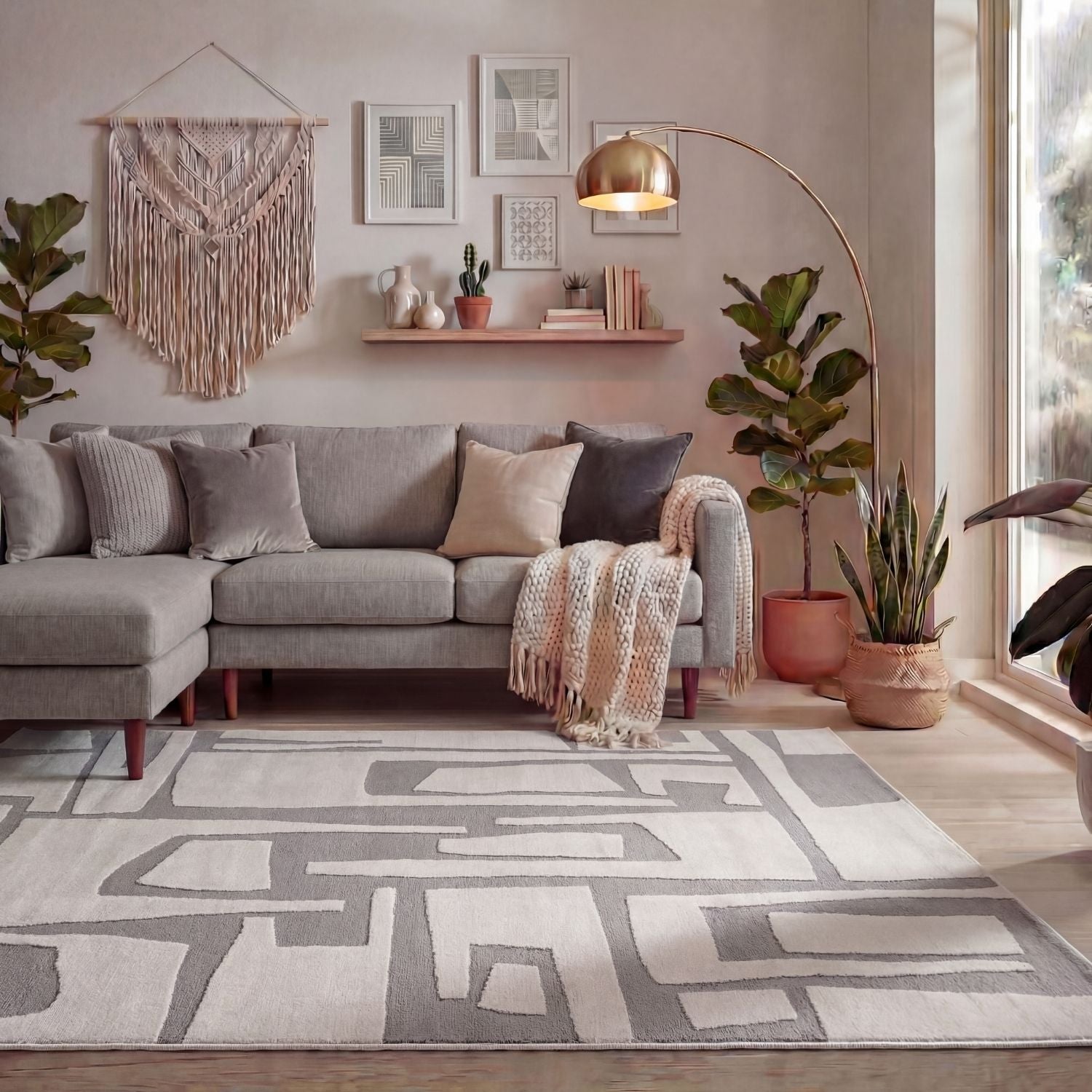 Elevate your home with the Loft Abstract Grey Rug. Featuring a fluid, abstract geometric design in soft grey on a light cream base, this rug adds calm, earthy elegance and subtle visual interest to any room. Ideal for living rooms, bedrooms, or creative spaces seeking a modern, relaxed statement.