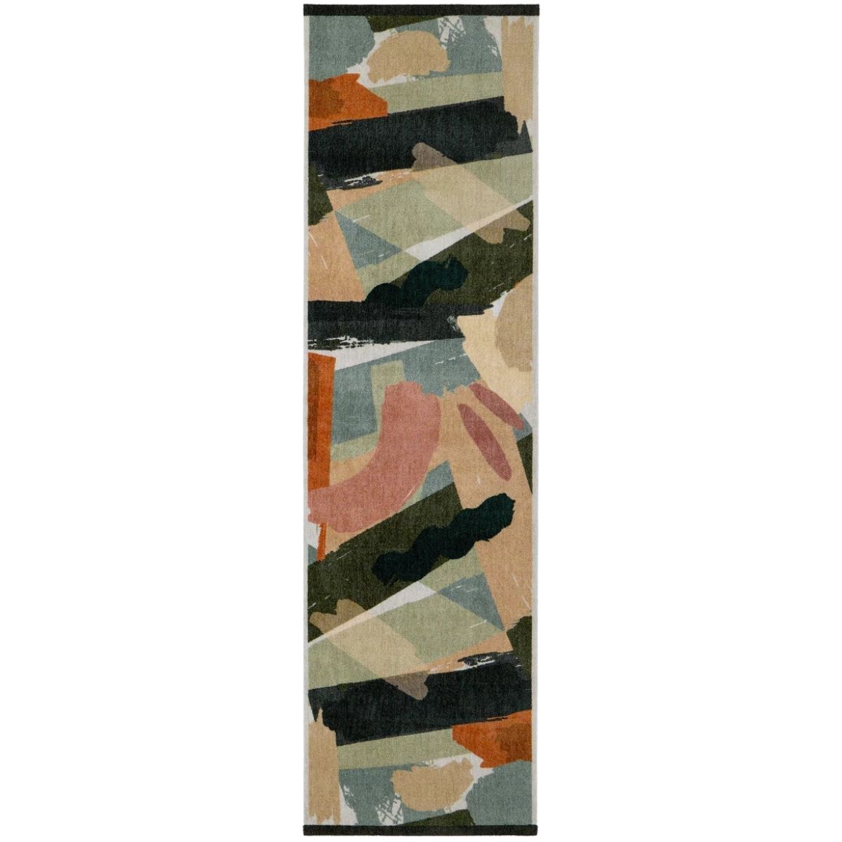 Bring artistic flair and everyday practicality to your home with this multicoloured abstract runner rug. Crafted in the UK with recycled content, it features a face of 100% synthetic nylon and a base of 100% virgin polyester for durability and softness. The earthy-toned paint-stroke design blends effortlessly with any décor while its super-absorbent, stain-resistant surface stands up to busy household traffic. Machine-washable at 30 °C, it’s perfect for hallways, kitchens, and entryways that need both style and easy care.