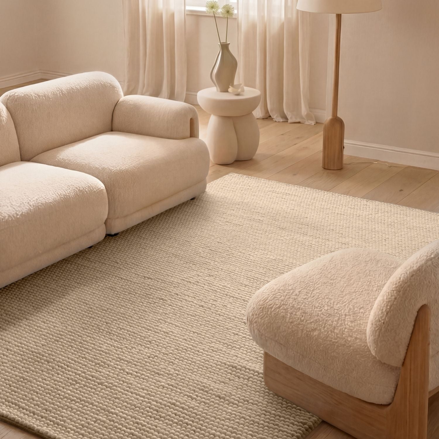 Styling Tip: Pair this light beige rug with warm wood tones, soft linen fabrics, and neutral décor to enhance its natural look. Add textured cushions or a wool throw to create a calm, layered space that feels effortlessly inviting.